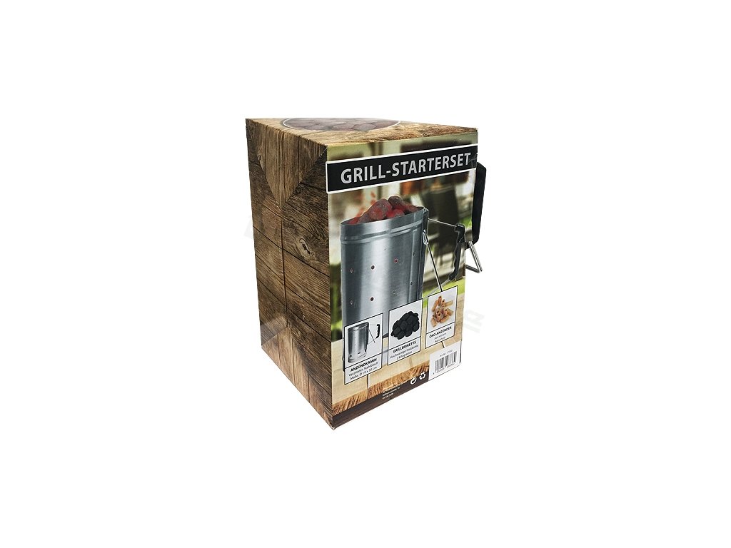 Kompletní balení obsahuje rozpalovací komín, eko podpalovač a 2kg grilovacích briket Activa.