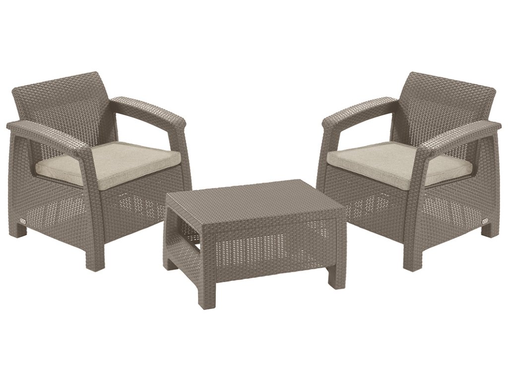 Zahradní set Corfu Weekend tvoří 2 pohodlná křesla a stolek. Komplet z vysoce kvalitního plastu v imitaci přírodního ratanu. Křesla jsou doplněna o polstrované sedáky pro větší komfort. Sestava je pro své rozměry vhodná na balkóny, menší terasy a zahtrady.
