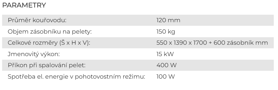 | Spotřeba pelet při minimálním výkonu | min 0,86 kg/h |