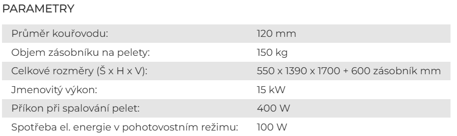 Spotřeba pelet při minimálním výkonu | min 0,86 kg/h |