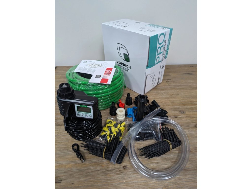 Zavlažovací systém Vordich PRO je určen pro zavlažování až 72 rostlin a obsahuje všechny potřebné komponenty pro vlastní instalaci, čímž splňuje požadavky i těch nejnáročnějších zákazníků.