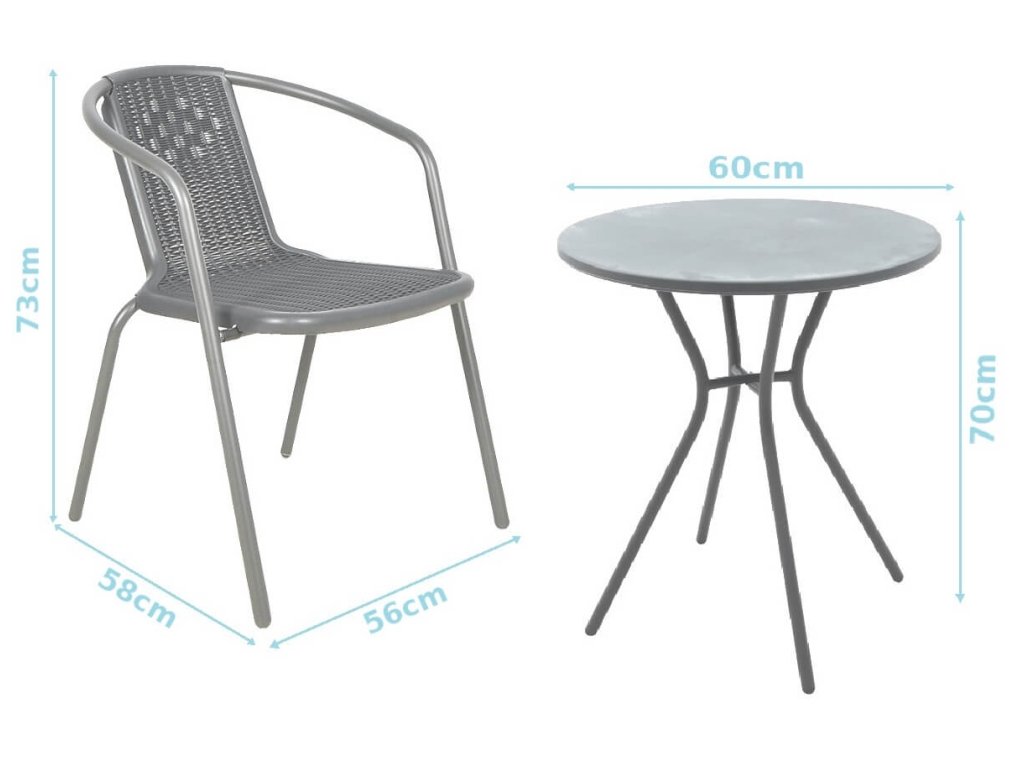 Balkonový nábytek Focus Garden Simple 2+1  je navržen tak, aby zajistil maximální komfort odpočinku. Set se skládá ze dvou pohodlných židlí a kulatého stolu, konstrukce je vyrobena z práškově lakované oceli v grafitové barvě.