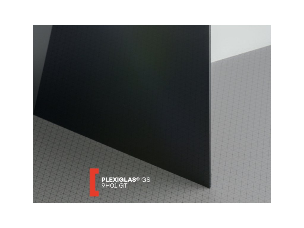 Lité černé plexisklo tl. 4mm s označením 9H01 nepropouští žádné světlo. Jedná se o velmi kvalitní druh plexiskla, materiál je vysoce odolný proti UV záření a povětrnostním vlivům. Obě povrchové strany těchto desek z plexiskla jsou hladké a vysoce lesklé, dodávané s ochrannou folií. Široké použití v reklamě, stavebnictví a průmyslu. Výroba litím znamená, že materiál se naleje mezi dvě skleněné desky a v peci postupně chládne. Tímto získává menší vnitřní pnutí, avšak větší tloušťkovou toleranci než extrudované plexisklo.