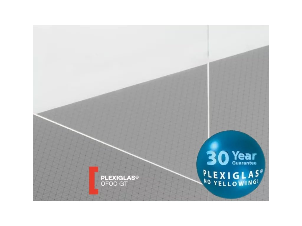 PLEXIGLAS® GS 0A31 (231) UV-absorbující speciální typ pro aplikace vyžadující vysokou UV ochranu, stejně jako pro oblasti se silným slunečním zářením.