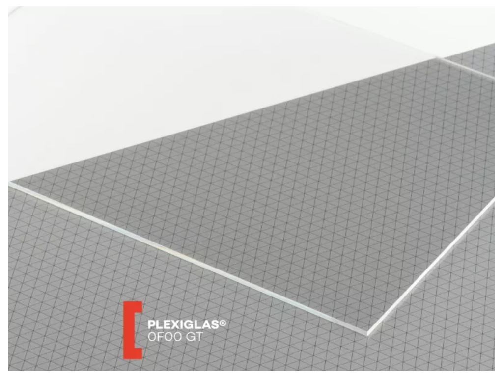 PLEXIGLAS® GS 0F00 (233) standardní třída plných desek s tloušťkou 2 až 25 mm, převážně absorbující UV záření.
