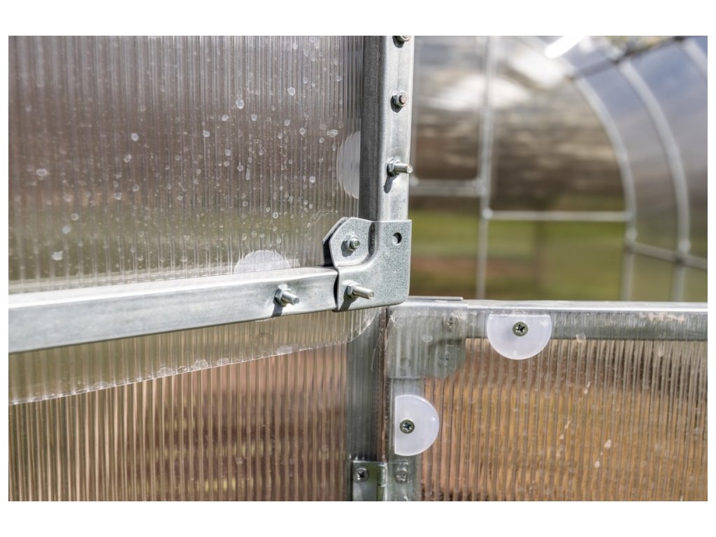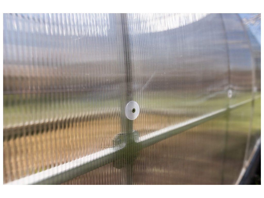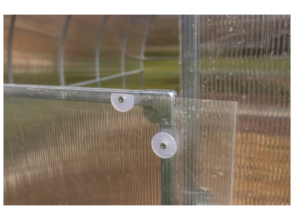 Zasklení je tvořeno 4mm vysokogramážním dutinkovým (komůrkovým) polykarbonátem s UV ochranou, který má oproti běžně prodávaným skleníkům zvýšené tepelně izolační vlastnosti. Polykarbonát splňuje veškeré podmínky pro udělení atestace zdravotní nezávadnosti toxikologickým centrem vydané státním zdravotním ústavem.