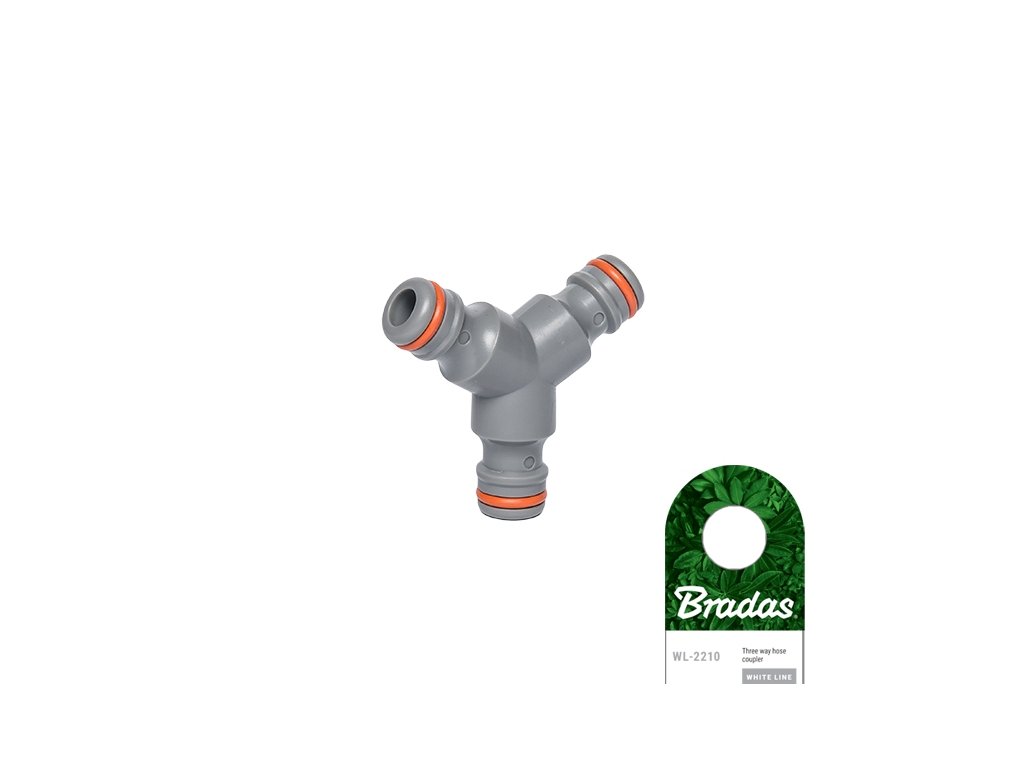 Třístranná spojka Bradas WHITE LINE pro připojení 3 rychlospojek. T-spojka pro připojení tří hadic s namontovanými rychlospojkami.