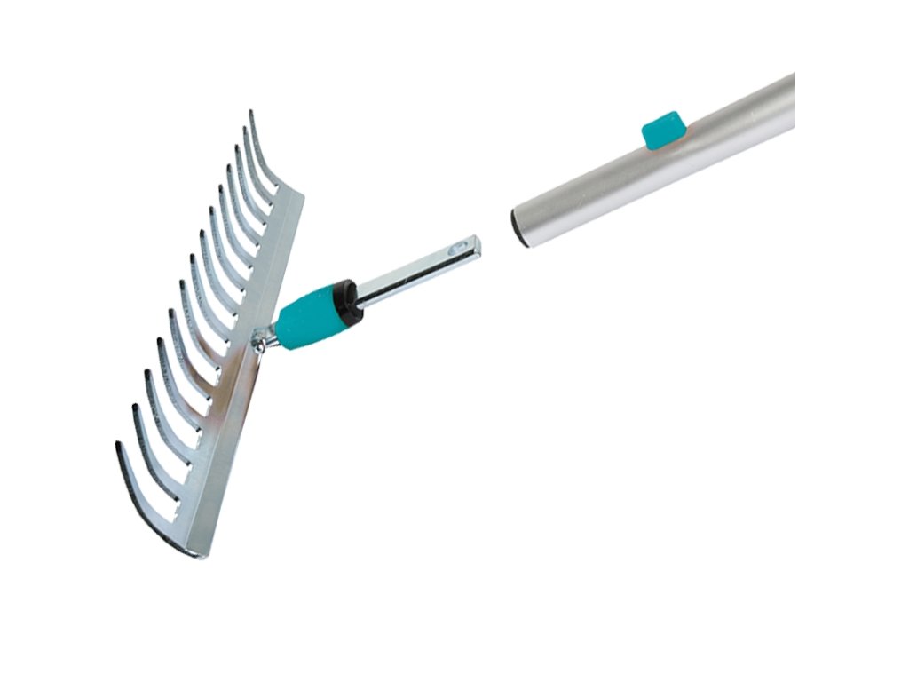 různých druhů zahradního nářadí. Jednoduchým způsobem za pomocí tlačítka lze nástavec na násadě vyměnit. Spojení násady a