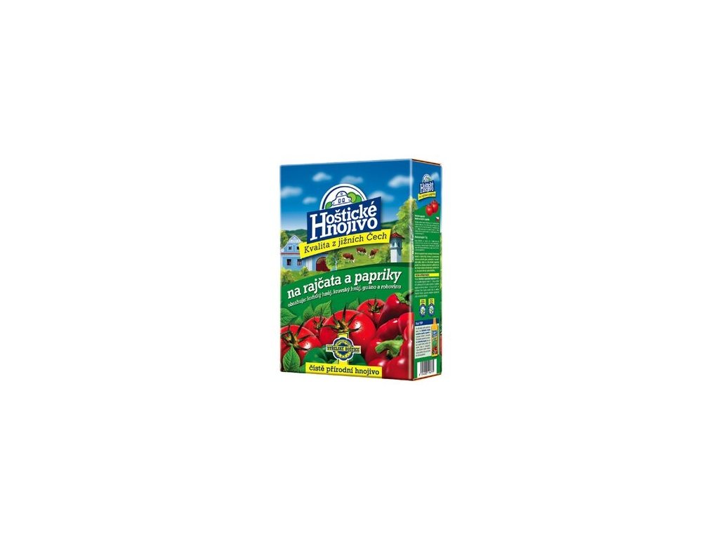 Hoštické organické hnojivo na rajčata a papriky obsahuje fermentovaný kravský a koňský hnůj, drcenou a granulovanou rohovinu a přírodní guáno, pocházející z trusu mořských ptáků. Jedná se o čistě přírodní produkt, bez přídavku průmyslově vyráběných složek. Hnojivo dodává nejen potřebné živiny, ale výrazně aktivuje i půdní mikroflóru.