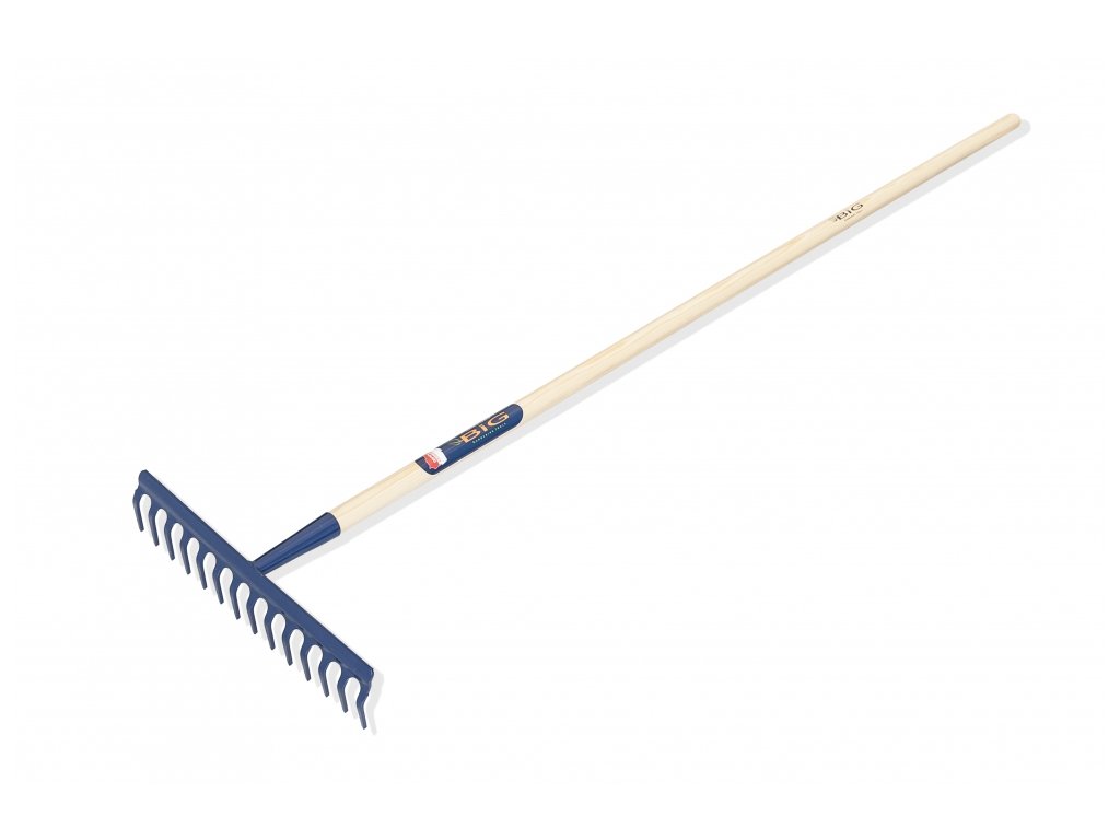 Hrábě kovové 16 zubé s dřevěnou násadou