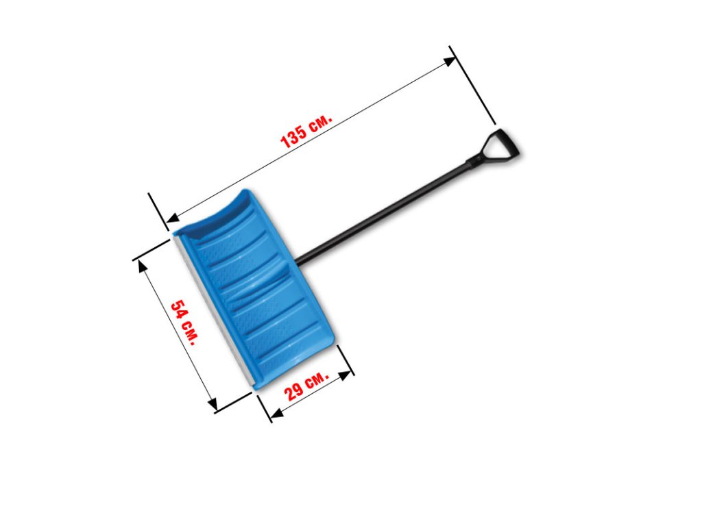 Kvalitní hrablo pro odklízení sněhu s širokou odklízecí plochou a ergonomicky tvarovanou násadou.