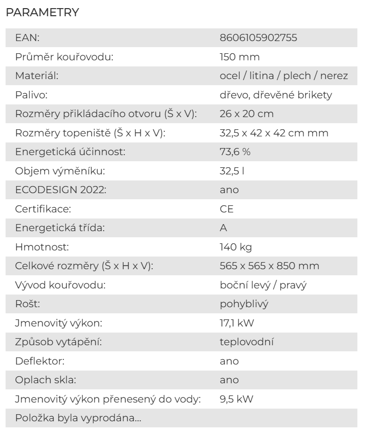 Vývod kouřovodu: boční levý nebo pravý (možnost i horního - potřeba dokoupit přírubu, není součástí)