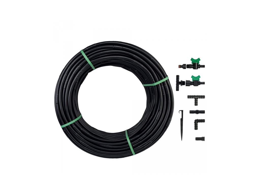 Sada obsahuje kapací hadici a 87 prvků, které vám ji umožní libovolně uspořádat dle vaší potřeby. Kapače jsou rozmístěny každých 33 cm; tvoří tak labyrint, kterým zajišťují mírné snižování průtoku vody se zvyšující se délkou hadice. Kapacita jednoho kapače je 2,0 l / h. Umožňuje zavlažovat velké plochy a snižuje tak náklady na zavlažování plodin. Možnost připojení soupravy k přívodu vody pomocí standardní rychlospojky.