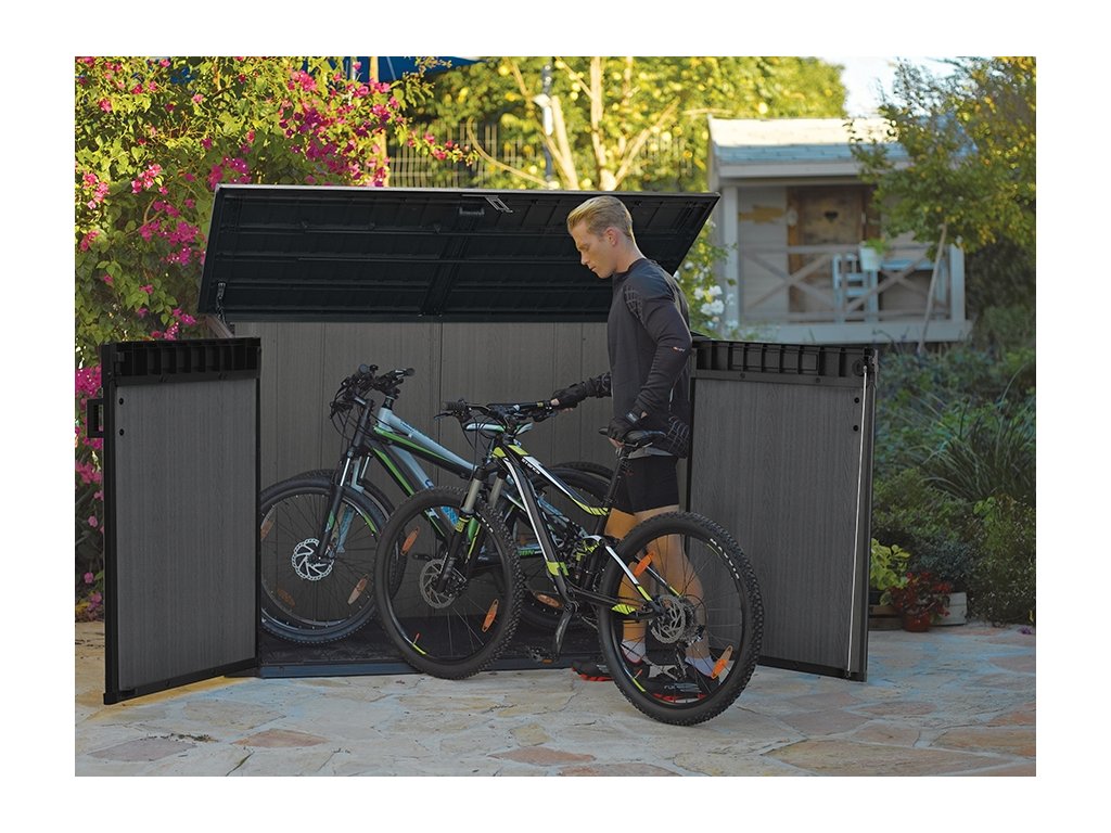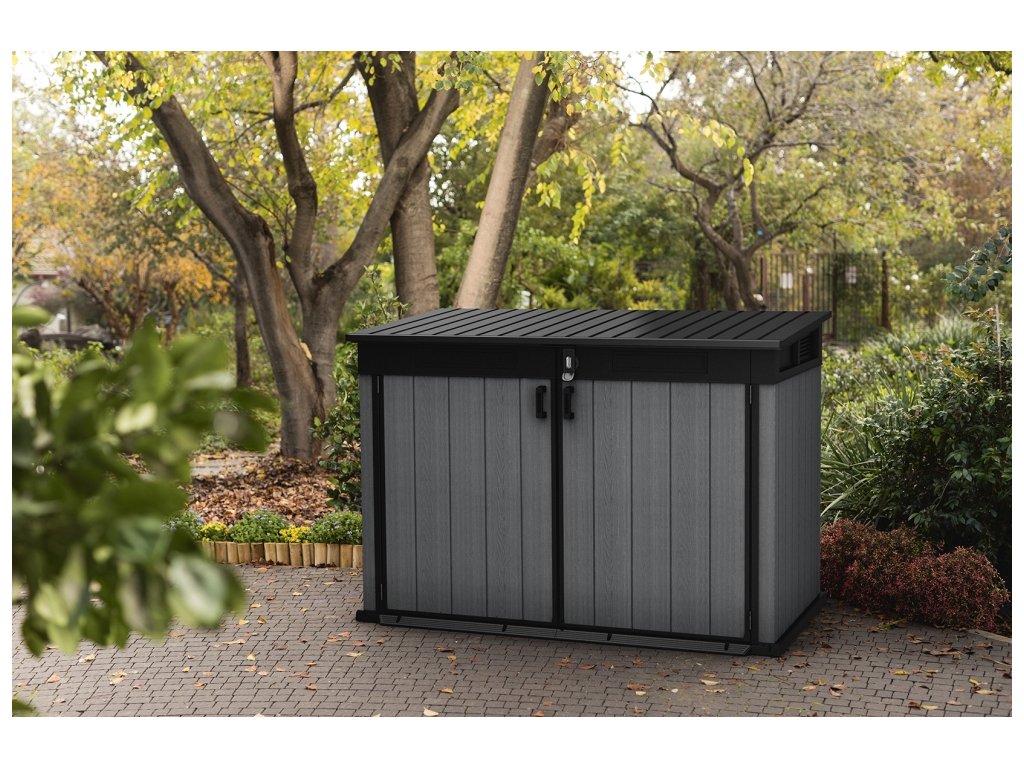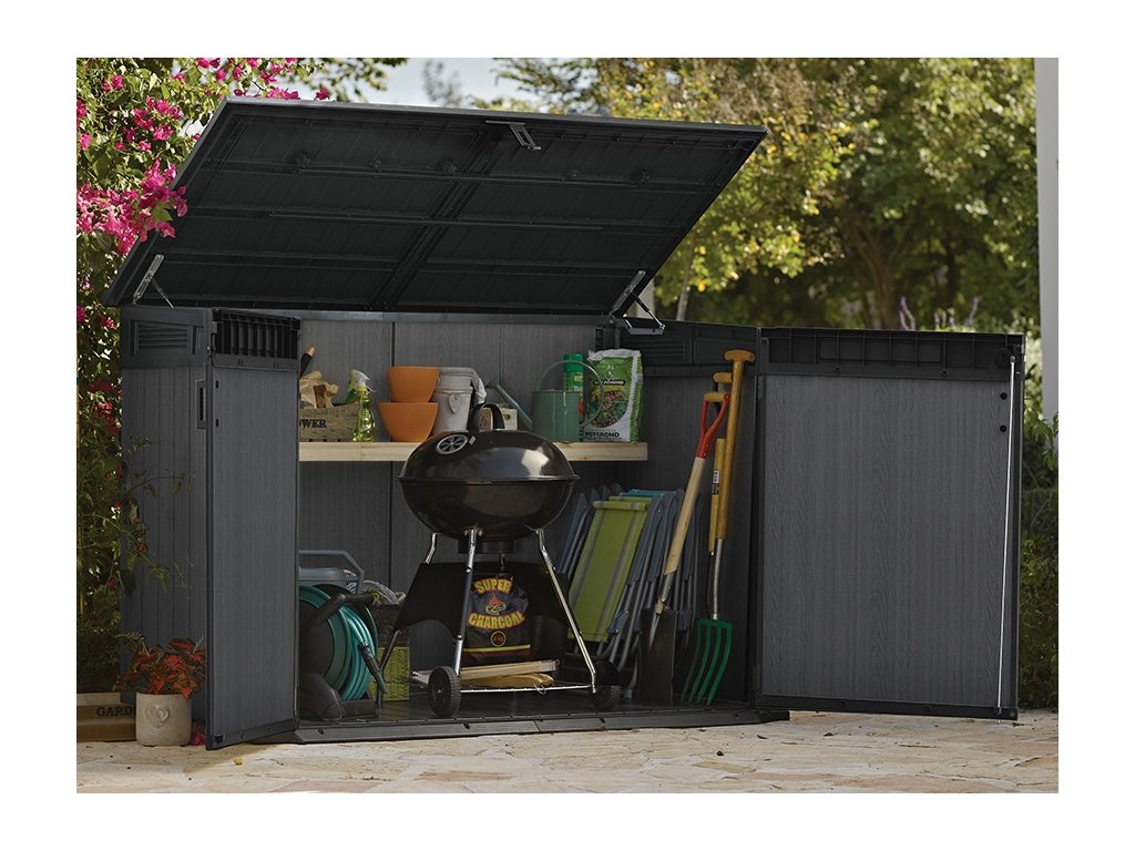 Univerzální úložný box GRANDE STORE je optimálním řešením pro uložení vybavení, zahradních doplňků a nářadí i různých domácích potřeb. Vhodná pro uložení popelnic, kol nebo zahradního nářadí.