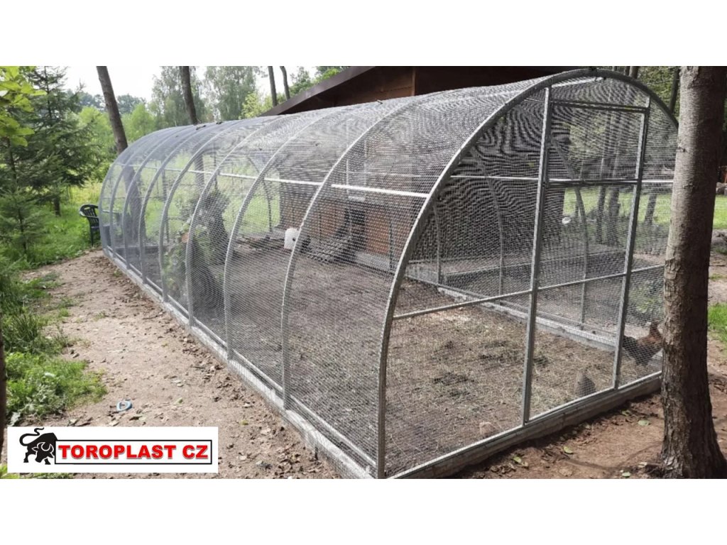 Volně stojící klec s pevnými dveřmi a odolnými panty je vyrobena z pozinkovaných ocelových profilů — tak pevná, že unese i dospělého člověka visícího ze střechy. Ideální pro venkovní i vnitřní použití.
