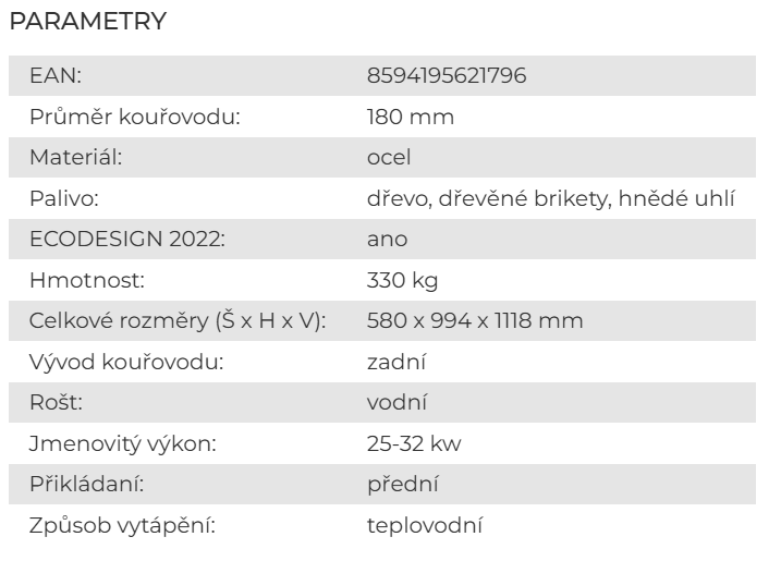 - Dlouhá doba hoření na jedno naložení, více než 7 hodin při plné zátěži a více než 12 hodin při poloviční zátěži