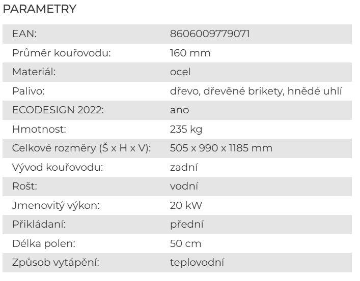 Nedílnou součástí kotle je popelník, čistící příslušenství a teploměr.