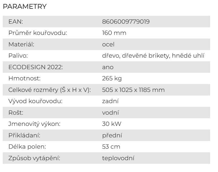 Nedílnou součástí kotle je popelník, čistící příslušenství a teploměr.