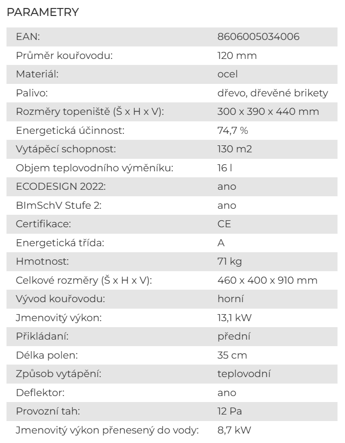 - Sklo dvířek : žáruvzdorné do 750 °C