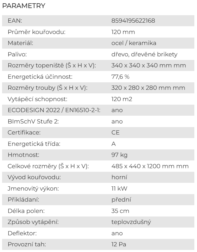 - Sklo dvířek : žáruvzdorné do 750 °C