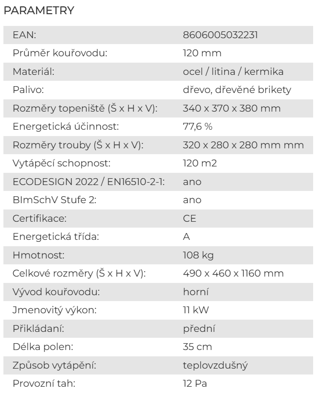 - Sklo dvířek : žáruvzdorné do 750 °C