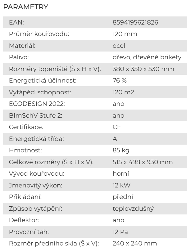 - Sklo dvířek : žáruvzdorné do 750 °C