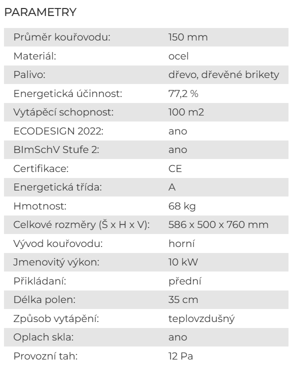 Elegantní krbová kamna se skvělým výkonem a účinností. Velká prosklená dvířka umožňují nejen pohodový zážitek z ohně, ale také snadný přístup do rozměrného topeniště.