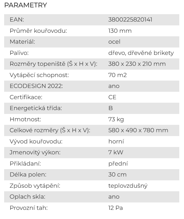 Tento výrobek není vhodný jako hlavní zdroj tepla k vytápění.