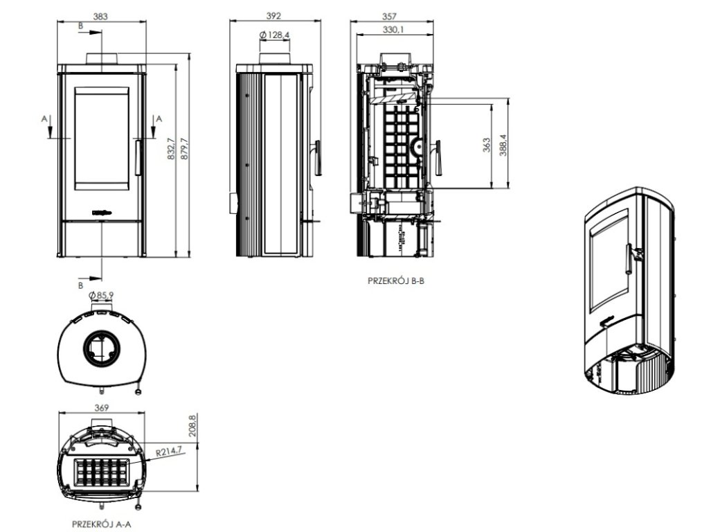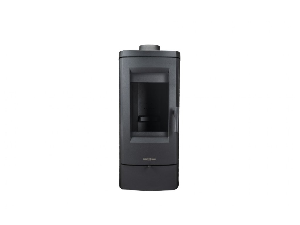 Celolitinová krbová kamna v moderním stylu. Velké prosklený průzor do ohniště a minimalistický design tvoří funkční doplněk do vašeho obytného prostoru.