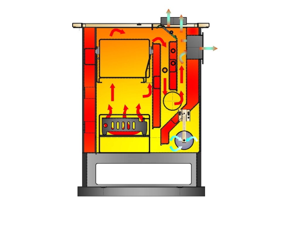 Kamna nabízí změnu letního a zimního provozu. Díky letnímu režimu je možné používat sporák k vaření, aniž by došlo k vytápění prostřednictvím topné soustavy.