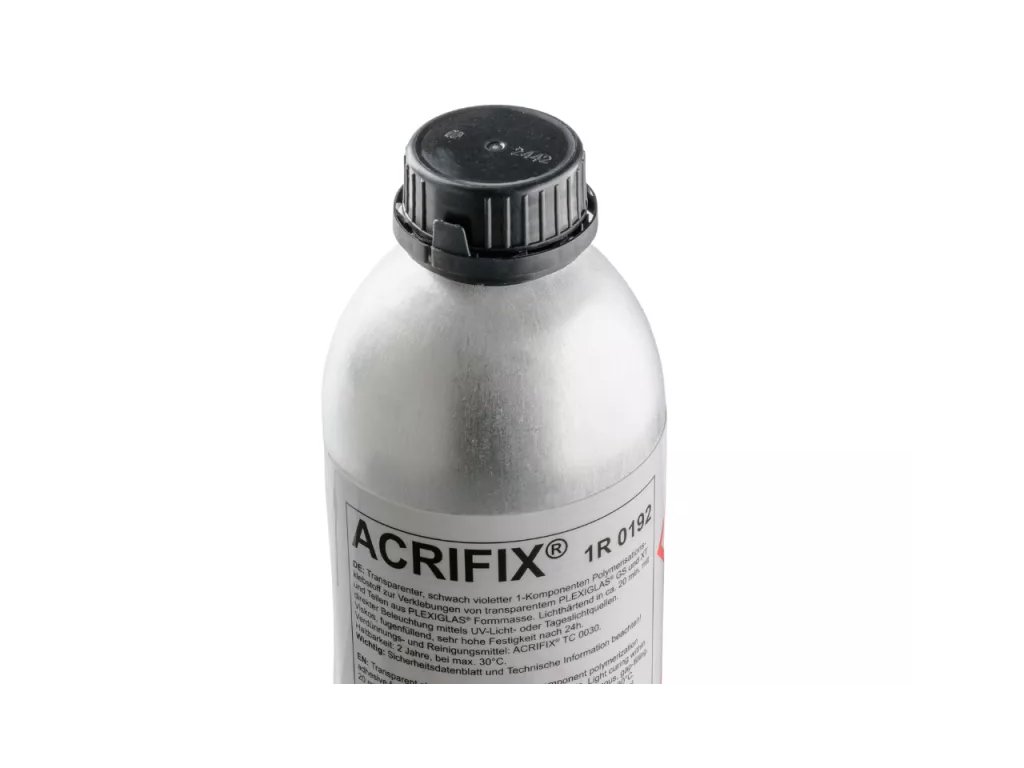 Lepidlo ACRIFIX® 1R 0192 je polymerové transparentní lepidlo s načervenalým odstínem, lepící roztok akrylátového polymeru v metakrylátu metylu, který je vytvrzován denním světlem. Druhou složkou tohoto lepidla je tedy světlo obsahující UV záření (zářivka, denní světlo). Určeno pouze pro čiré plexisklo! Baleno v hliníkové tubě (dostupné i v 1kg lahvi), doba použitelnosti 24 měsíců od data plnění.