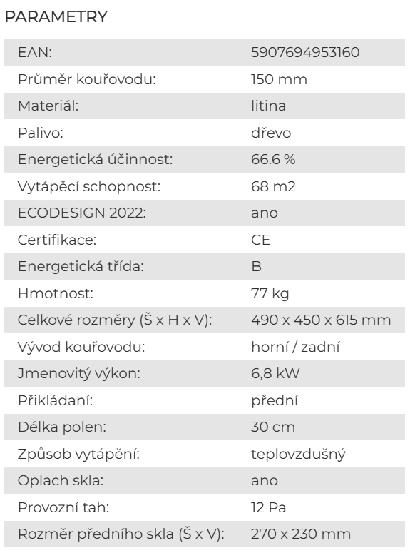 Litinová krbová kamna P10 - 6,8 kW ECO