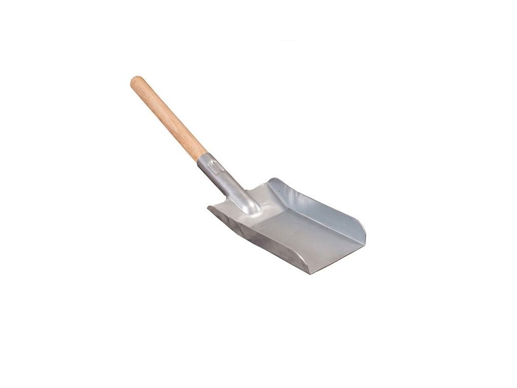 Plechová lopatka z pozinkovaného plechu s dřevěnou násadou na uhlí.