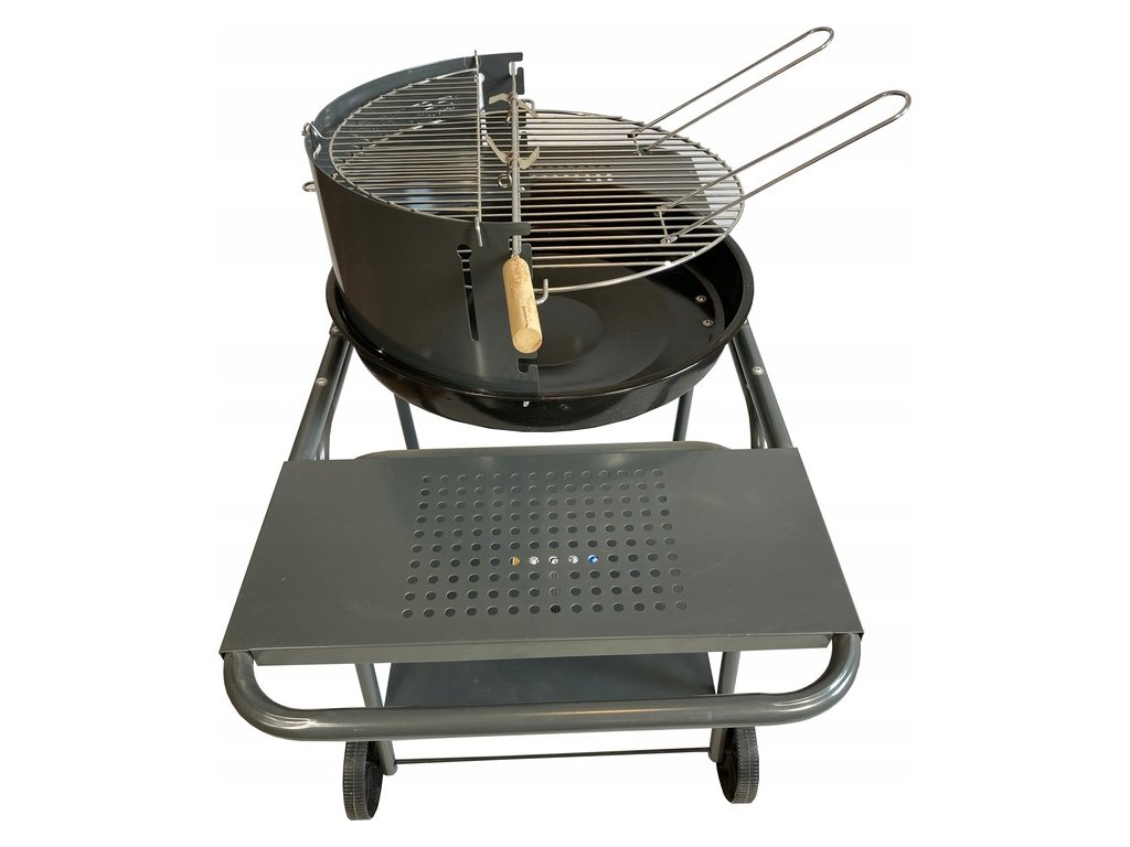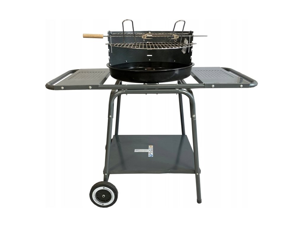 Kruhový gril Master Grill MG906 umožňuje přípravu jídla na roštu nebo rožni. Boční police jsou velmi užitečné jako odkládací prostory při grilování a díky kolečkům je manipulace s celým grilem velmi pohodlná. Vyznačuje se vysokou odolností a odolnou povrchovou úpravou v grafitové barvě.