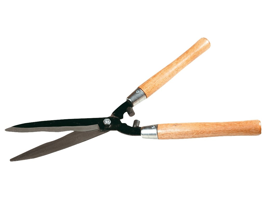 Klasické nůžky určené pro stříhání živých plotů. Zvlněné ostří je vyrobeno z vysoce kvalitní kalené oceli. Oválná madla jsou vyrobena z lakovaného dřeva. Pro snadné a pohodlné zastříhávání živých plotů.