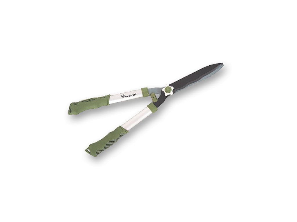 Worth nůžky určené pro stříhání živých plotů. Zvlněné ostří je vyrobeno z vysoce kvalitní oceli potažené vrstvou teflonu. Čepele jsou opatřeny stavěcím šroubem pro manuální nastavení. Oválná hliníková madla jsou potažena protiskluzovou vrstvou. Pro snadné a pohodlné zatříhávání živých plotů.