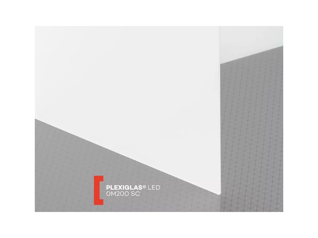 Jednostranně pískované akrylátové desky Plexiglas LED 0M200 SC v tl. 3 mm pro nasvětlování LED diodami. Desky jsou speciálně vyvinuty především pro světelnou reklamu; materiál je vysoce odolný proti UV záření a povětrnostním vlivům. Široké použití nejen ve světelné reklamě, nábytkářství či designu.