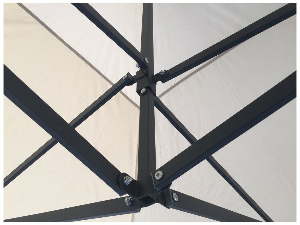 Konstrukce tohoto párty stanu je z odlehčené oceli se šroubovanými spoji.