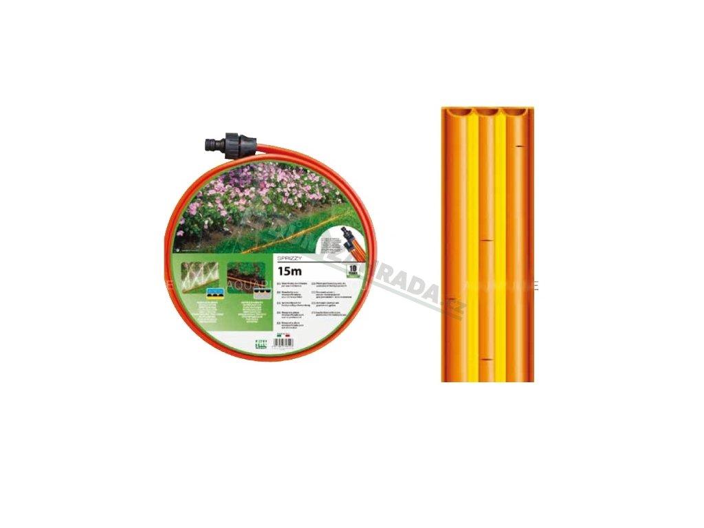 Tříkanálová zavlažovací hadice o průměru 1/2" a délce 7,5 metrů. Zavlažování probíhá na způsob malých fontánek nebo při obráceném použití přímo do zeminy.