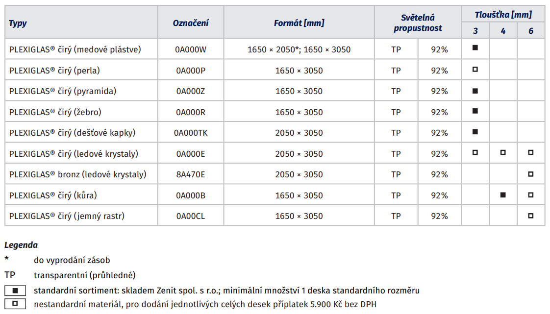 Nestandardní materiál, pro dodání jednotlivých celých desek příplatek 5.900 Kč bez DPH.