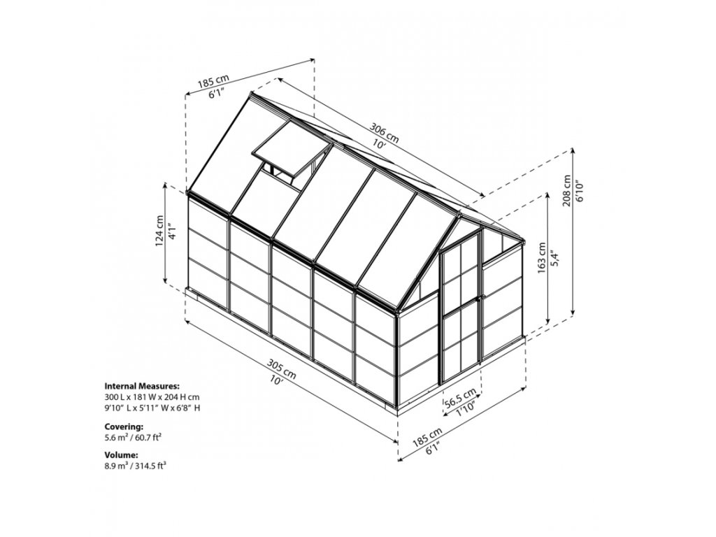 Polykarbonátový skleník - Palram Hybrid 6x10 (D x Š x V) (cm): 305 x 185 x 208