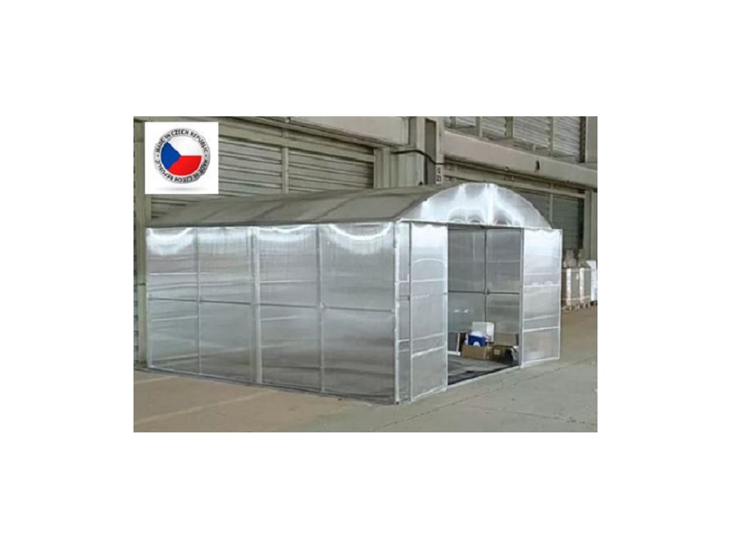 Polykarbonátový skleník vyrobený v České republice. Výška 2,4 metry. Rám skleníku rovnostěnné z pozinkované trubky 40x20, skládací provedení. Délku lze díky dokoupení prodloužení navýšit až na 20m.