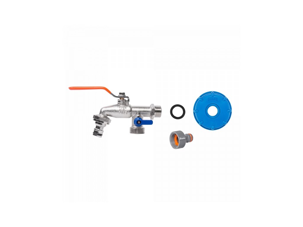 Sada pro nádrž na vodu IBC. Skládá se z redukce S60x6 se závitem 1/2" a zahradního ventilu GGKK0512 se dvěma 3/4" výstupy. Součástí sady jsou plastová a mosazná rychlospojka a těsnění.