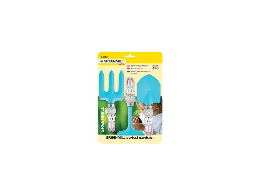 Sada dětského nářadí Greenmill GR0135 je set skládající se ze 3 kusů zahradního nářadí, která obsahuje hrabičky, lopatku a vidle. Pracovní část nástrojů je vyrobena z oceli a rukojeť ve tvaru barevného zvířete je vyrobena z plastu. Díky důkladnému zpracování umožňuje vašemu dítěti nejen hru na písku, ale je vhodná i na pomáhání s prací na zahradě.
