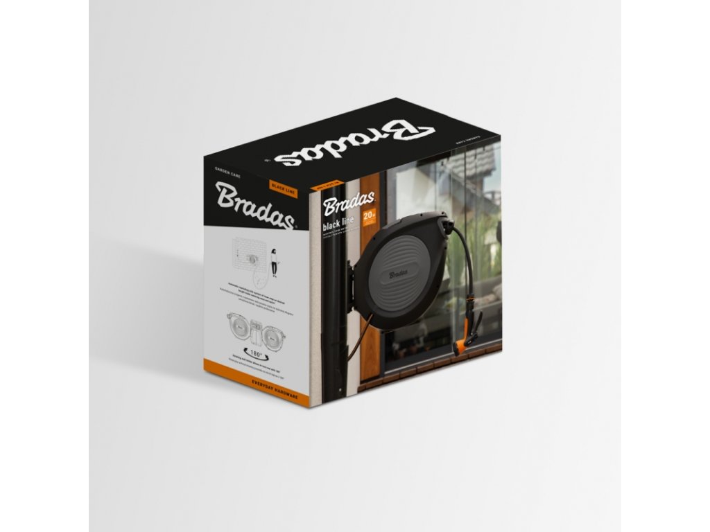 Samonavíjecí buben pro zahradní hadici BRADAS BLACK LINE - 1/2" 20m - s příslušenstvím