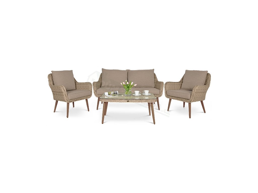 Minimalistický vzhled společně s klasickou elegancí a moderním stylem jsou hlavními přednostmi sedací soupravy Cassis Brown. Vyjímečnost tohoto setu podtrhují vysoké nožky z aluminiových profilů s povrchovou úpravou imitující přírodní dřevo. Komplet je tvořen vysoce kvalitním technoratanem v příjemném přírodním odstínu.