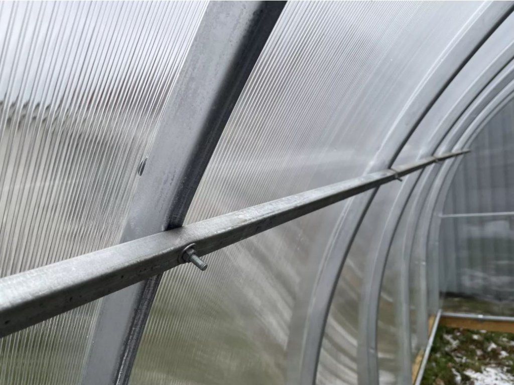 Skleník má na koncích 2 dveře, 2 okna pro průchozí větrání. Jeho rám se vyrábí ve dvou provedeních ze žárově pozinkovaných trubek 40x20mm. Vzdálenost mezi oblouky je 67 cm. Design má celosvařované fasády, které zajišťují jednoduchou montáž a pevnost rámu. Ve skleníku jsou již vytvořeny otvory pro šrouby.