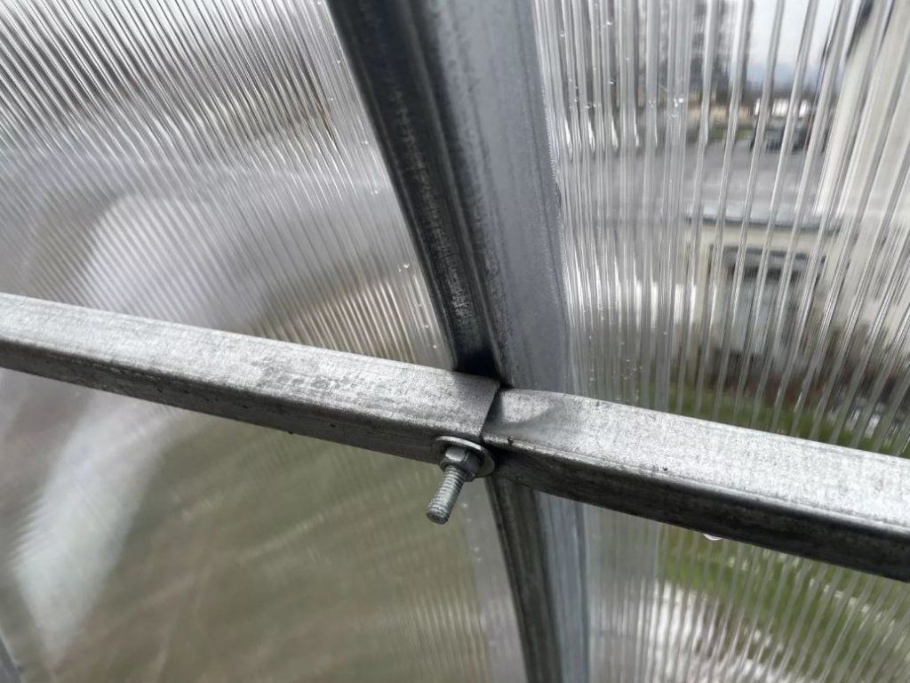 Obsahem dodávky je kompletní skleník = nosná konstrukce (včetně dveří a oken), veškeré potřebné spojovací prvky + polykarbonátové desky.
