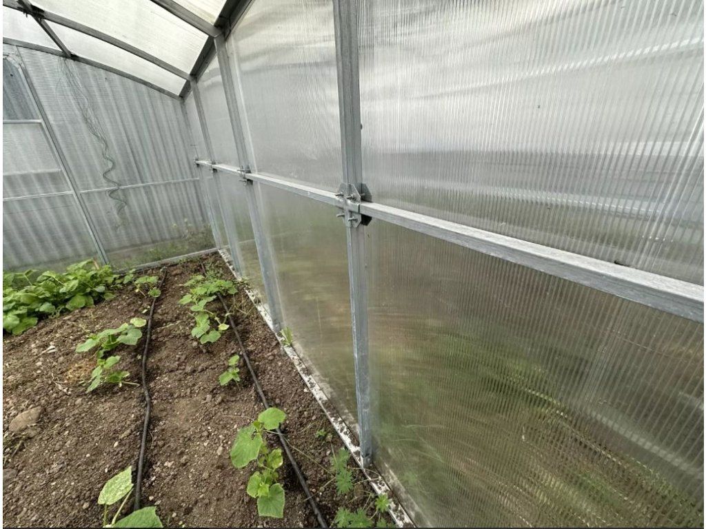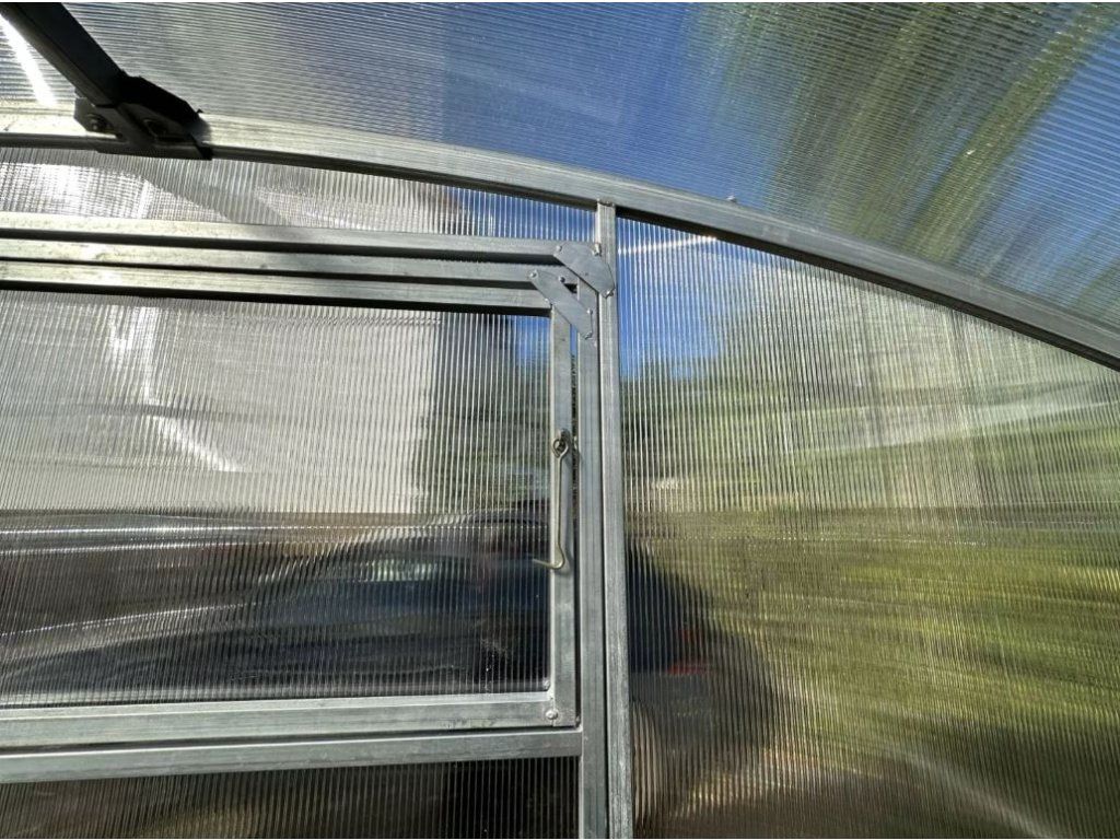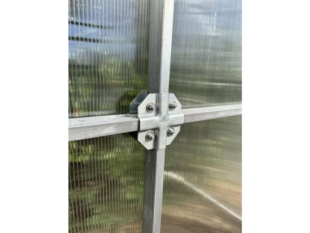 Skleník má na koncích 2 dveře, 2 okna pro průchozí větrání. Jeho rám se vyrábí ze žárově pozinkovaných trubek 40x20mm. Vzdálenost mezi oblouky je 1,0 m. Ve skleníku jsou již vytvořeny otvory pro šrouby.