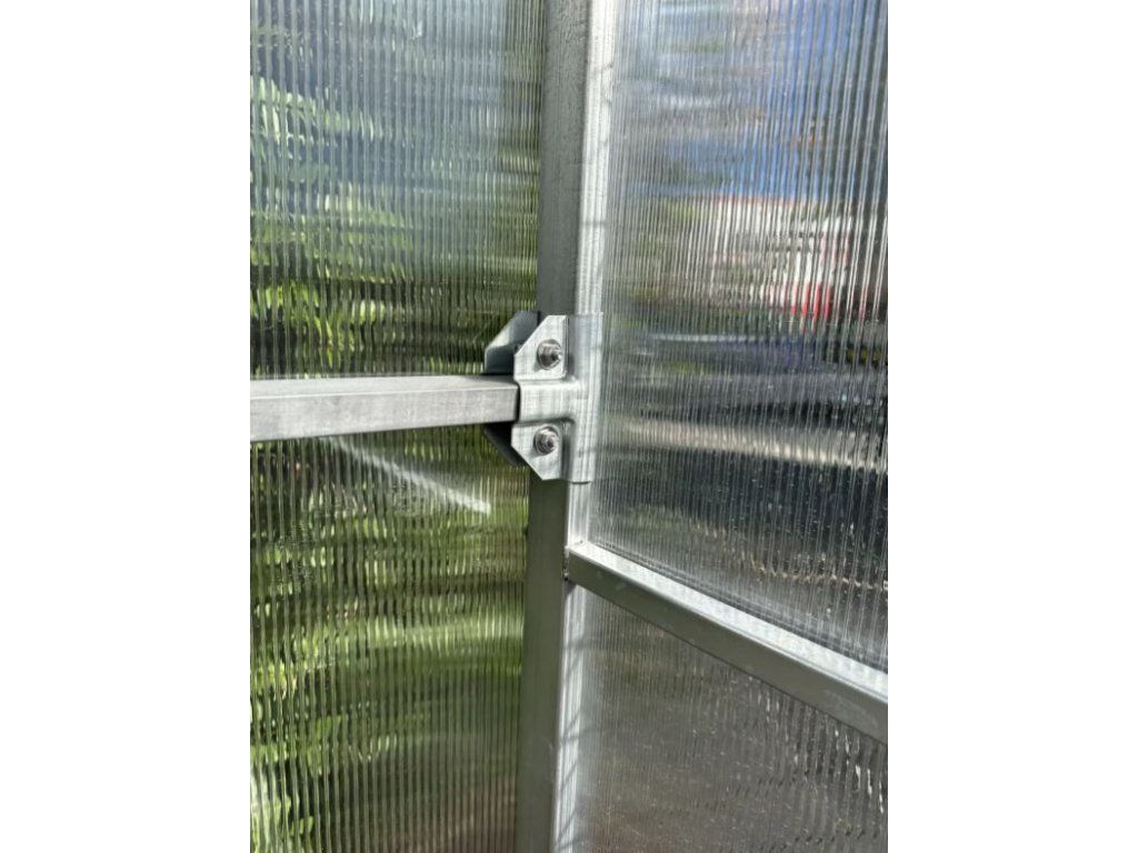 Obsahem dodávky je kompletní skleník = nosná konstrukce (včetně dveří a oken), veškeré potřebné spojovací prvky + polykarbonátové desky.